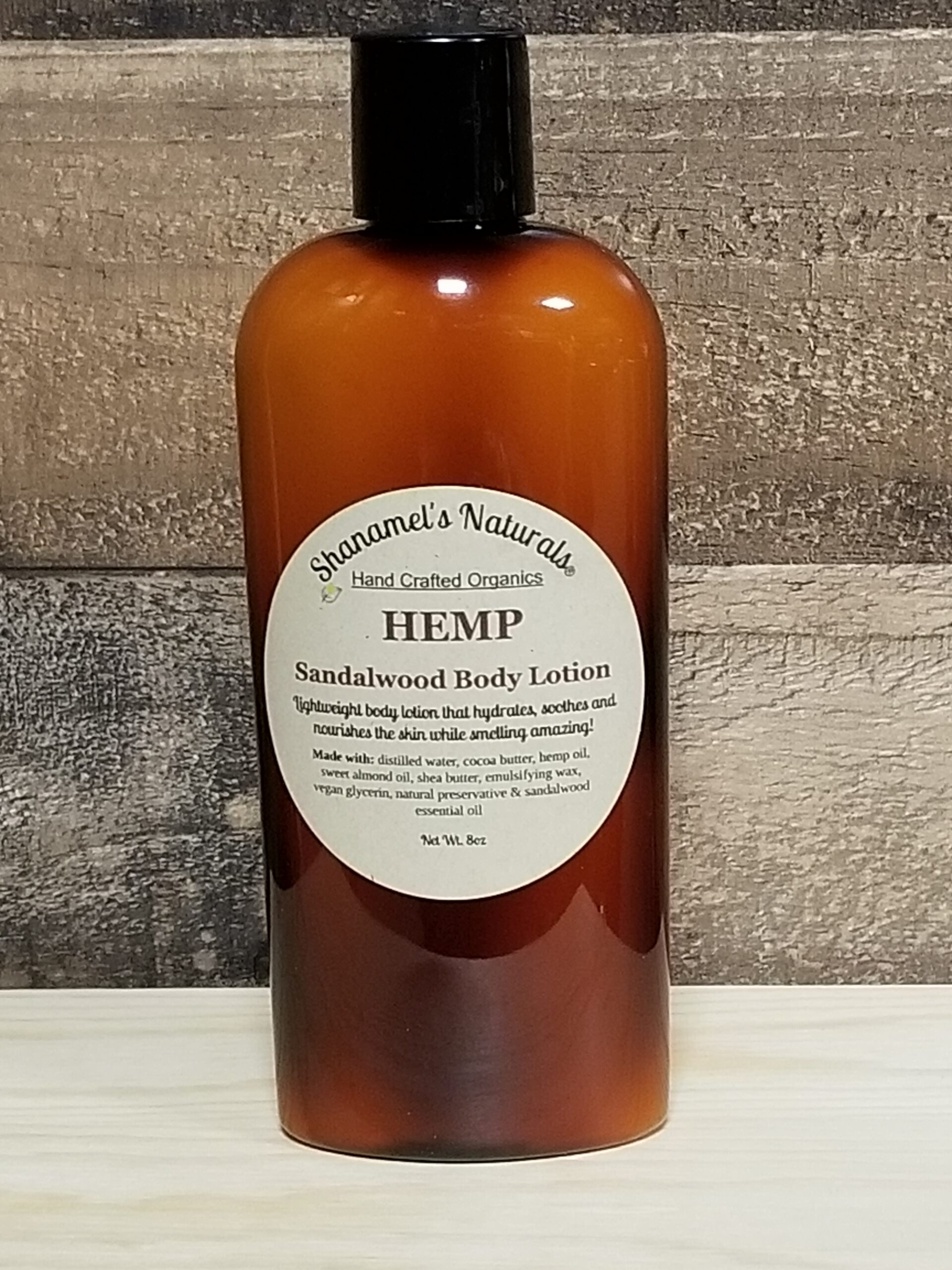 Sandalwood Hemp Lotion is very hydrating and nourishing. Feels lightweight on the skin, but lasts all day.